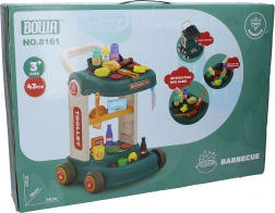Compatto carrello barbecue con ricca dotazione per piccoli chef e giocatori alle feste in giardino. La confezione include carrello con ruote, alimenti, stoviglie e accessori per grigliare. Ideale per il gioco di cucina per bambini, per stimolare la fantasia e il divertimento condiviso.