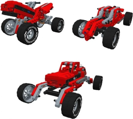 Dal monster truck al buggy fino ad altre varianti off-road: la struttura modulare stimola la creatività e il gioco ripetuto.
