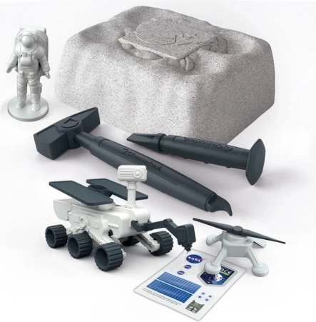Questo set interattivo unisce scienza e divertimento: dal mattone di gesso “da scavare” estrai gradualmente modelli ispirati a vere missioni NASA. Una volta scoperti, puoi assemblare rover e drone e partire per la tua spedizione spaziale.