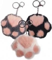 Un ciondolo modernizzato a forma di zampa di cane colorata, utilizzabile come decorazione per chiavi, zaini o abbigliamento. La zampa è appesa a una catenella terminante con moschettone.