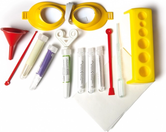 Include un set completo di strumenti di laboratorio e molte altre sostanze per osservazioni, esperimenti e vere reazioni chimiche.