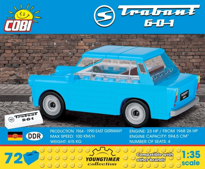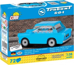 La Trabant 601 è tra le automobili più note dell’Europa dell’Est. Il set COBI in scala 1:35 riproduce con precisione le sue linee tipiche e consente piccole modifiche e personalizzazioni. Il modello fa un’ottima figura in vetrina e offre al contempo un montaggio divertente per bambini e adulti.