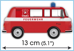 Costruisci il leggendario minibus dell’ex Germania Est Barkas B1000 nella versione per i vigili del fuoco! Il set COBI con 151 pezzi in scala 1:35 offre dettagli fedeli, stampe durevoli senza adesivi e ruote girevoli. Una scelta perfetta per gli appassionati di youngtimer, per sviluppare la motricità e la creatività dei bambini e come modello da collezione.