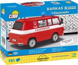 Il Barkas B1000 è stato un furgone e minibus iconico prodotto tra il 1961 e il 1991 nella ex RDT. La variante Feuerwehr era adattata alle esigenze dei corpi dei vigili del fuoco. Questo set COBI riproduce fedelmente il carattere del veicolo storico in scala 1:35 e, grazie alle stampe di alta qualità, ha un aspetto eccellente anche senza adesivi.