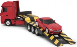 Trasporta la AMG GT sul semirimorchio ribassato del trattore MERCEDES-BENZ ACTROS e goditi un carico e una guida autentici. Perfetto per il gioco creativo e per i collezionisti.