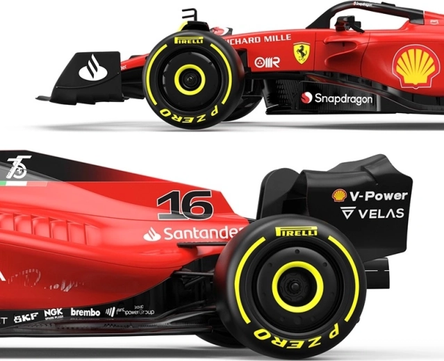 La carrozzeria fedelmente riprodotta con adesivi degli sponsor e l'iconica verniciatura rossa FERRARI lo rendono un pezzo da collezione attraente e un ottimo giocattolo.
