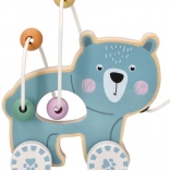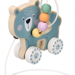 Giocattolo in legno su ruote con orsetto cattura l'attenzione e incoraggia il bambino a muoversi.