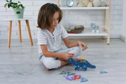 I puzzle dei dinosauri colorati aiutano i bambini a migliorare le loro abilità motorie sottili e la coordinazione.