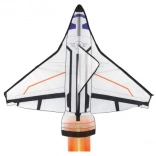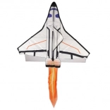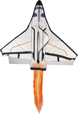 Questo aquilone è realizzato a forma di navetta spaziale con una combinazione di bianco, nero e arancione che imita l’aspetto di una vera navetta.