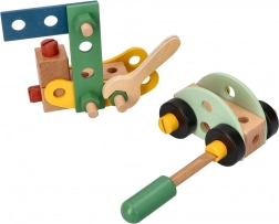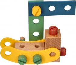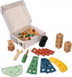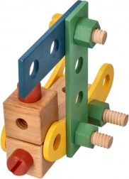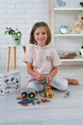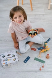 Presentiamo il Set di costruzioni in legno per bambini unico, che permette lo sviluppo della coordinazione mano-occhio, il pensiero logico e la creatività. Il set include viti, barre, dadi, ruote e anche cacciavite e chiave inglese - tutto ciò che serve per assemblare veicoli.