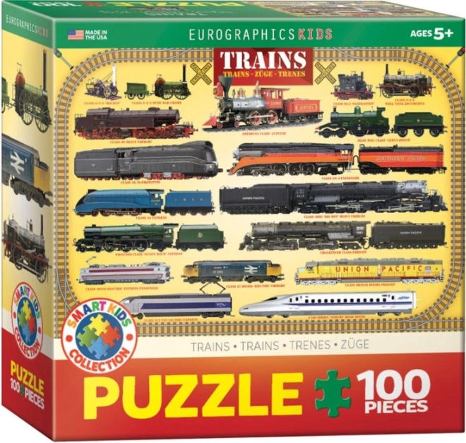 Scopri un puzzle divertente e istruttivo a tema treni del brand EUROGRAPHICS, ideale per bambini dai 5 anni. Il puzzle con 100 pezzi sviluppa motricità fine, pensiero logico e pazienza. I testi sul puzzle sono in lingua inglese e l’opera finita misura ca. 48,3 × 33 cm.