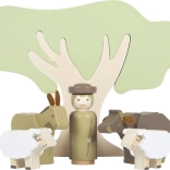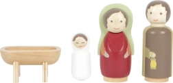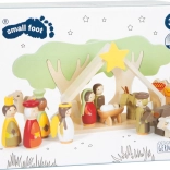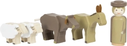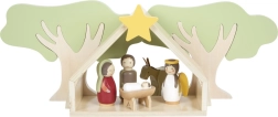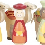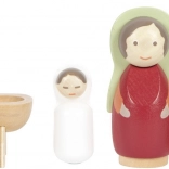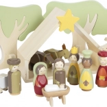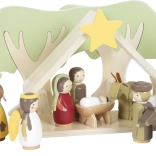 Il set include i personaggi principali della storia del presepe e gli animaletti. I bambini possono riorganizzare continuamente la scena, rafforzando fantasia e capacità di narrazione.