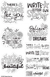 - 6 messaggi ispiratori, paillettes, polvere glitterata, coriandoli di carta