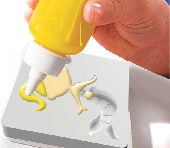 Riempi gli stampi con i gel colorati, immergili nella soluzione preparata e osserva come un disegno piatto si trasforma in una morbida decorazione 3D. Facile, veloce e divertente.