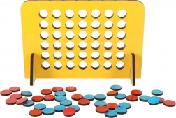 Gioca al popolare gioco Quattro in fila, ora nella versione da viaggio, e goditi il divertimento in qualsiasi momento e ovunque. L'obiettivo del gioco è collegare quattro gettoni dello stesso colore in una fila in orizzontale, verticale o diagonale. La tavola di legno con fori consente l'inserimento facile dei gettoni.