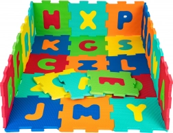 Tappetino educativo in gommapiuma con 26 pezzi dell’alfabeto, ideale per bambini dai 10 mesi. I pezzi in morbida schiuma EVA creano un’area di gioco sicura che isola dal freddo, assorbe gli urti e grazie alle lettere rimovibili favorisce gioco e apprendimento. Si pulisce facilmente, ha una struttura antiscivolo e colori vivaci che catturano l’attenzione di ogni bimbo.