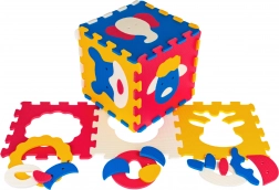 Gli elementi centrali a forma di animaletti possono essere rimossi e reinseriti nelle sagome oppure usati per creare oggetti tridimensionali, ad esempio un cubo. Un gioco che sviluppa la motricità fine e la fantasia.