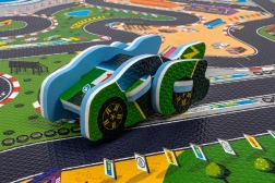 Il set comprende 6 pezzi per assemblare una leggera macchinina in schiuma: sicura, divertente e subito pronta a sfrecciare in pista.