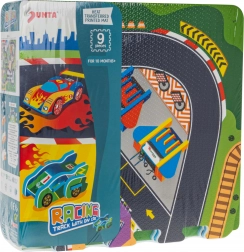 Costruisci a casa il tuo circuito da corsa! Il tappetino colorato composto da 9 pezzi in schiuma offre ai bambini uno spazio sicuro per giocare, imparare e gattonare. La superficie in schiuma EVA è morbida al tatto, facile da pulire e, grazie alla struttura antiscivolo, garantisce stabilità durante i primi passi.