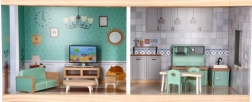 Ogni piano offre uno stile diverso di stanze: soggiorno, cucina, camera da letto e balcone. I bambini possono facilmente spostare i mobili e creare nuovi scenari.