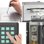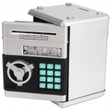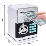 Questa cassetta di sicurezza elettronica sembra una vera cassaforte ed è ideale per conservare monete e banconote. Con serratura a codice e indicatori luminosi, non solo è di grande aiuto, ma è anche un eccellente divertimento per i bambini. La cassetta ha spazio per depositare sia monete che banconote ed è dotata di pulsanti retroilluminati.
