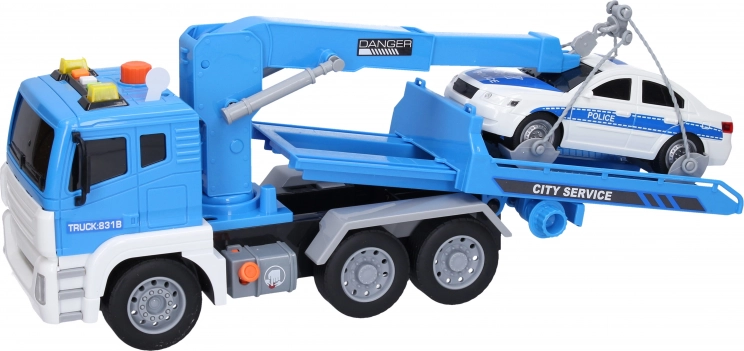 Il sistema idraulico è facile da usare grazie al grande pulsante arancione, che consente di sollevare il braccio di carico. Inoltre, la leva arancione tra le ruote permette di abbassare rapidamente il braccio di carico. Questo autotreno è un’ottima scelta per i bambini che amano i veicoli e i giochi interattivi.