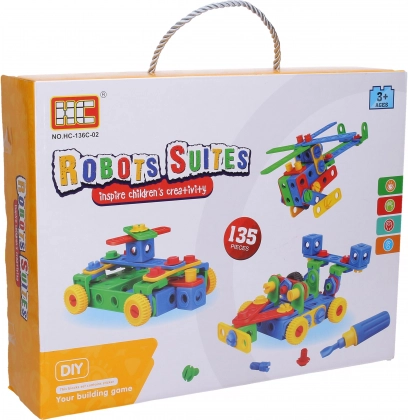 La costruzione con viti da 135 pezzi è un gioco creativo che offre ore di divertimento. Ideale per i bambini che amano costruire e creare, questo set include tutto il necessario per iniziare.
