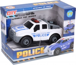 Nella confezione è incluso un cacciavite a croce con chiave per dadi integrata nel manico, così i bambini hanno tutto il necessario per montare e smontare. A scelta due varianti di colore – bianco e blu, ideali per ogni collezione di veicoli della polizia.
