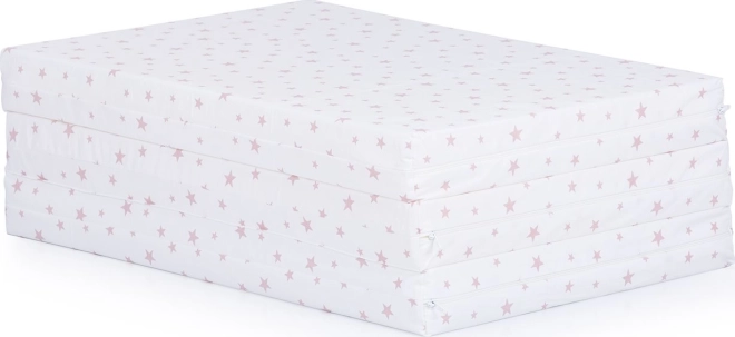 Il materasso pieghevole Chipolino con dimensioni 120x60 cm è progettato per adattarsi ai lettini standard per bambini. La sua struttura compatta facilita sia l’utilizzo sia la manutenzione. La fodera del materasso è decorata con stelle rosa, conferendo un aspetto delicato e piacevole alla cameretta.