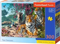 Puzzle Rifugio della Tigre ti porta in un bellissimo e tranquillo ambiente naturale con adorabili tigri. Con questo puzzle di 300 pezzi puoi immergerti in un'attività rilassante che allo stesso tempo rafforza la concentrazione e la pazienza.
