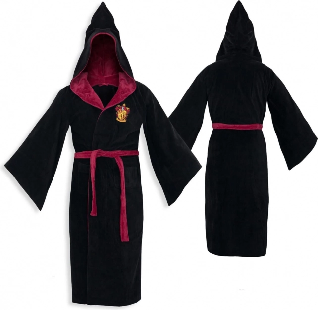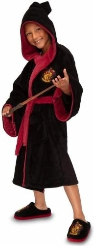 Comodo accappatoio per bambini ispirato al mondo di HARRY POTTER con stemma di Grifondoro, perfetto per piccoli maghi dai 7 ai 9 anni. Il morbido materiale in 100% poliestere, la cappuccio e la cintura in vita garantiscono calore e comfort dopo il bagnetto e durante il relax a casa.