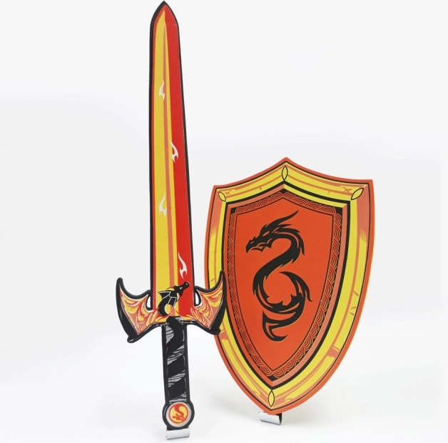 Set divertente e sicuro per piccoli guerrieri: spada e scudo in schiuma con motivo drago. Grazie al materiale morbido il gioco è sicuro, leggero e ideale come accessorio per costumi di carnevale o per duelli cavallereschi a casa.