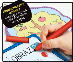 La penna Montessori è stata sviluppata sulla base dello studio dell’anatomia. Ha un’impugnatura ergonomica con speciali incavi per le dita che favoriscono la corretta presa della penna. La penna speciale è progettata per adattarsi alla mano dei bambini. È adatta anche ai bambini mancini!