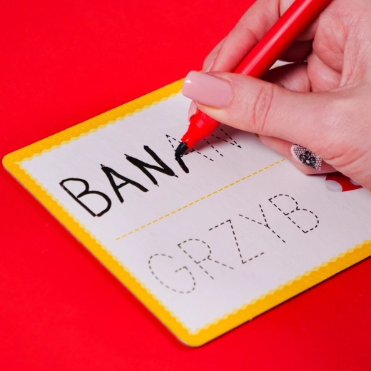 La confezione include 32 schede su cui è possibile scrivere e disegnare con la speciale penna ergonomica inclusa nel set.