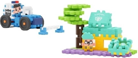 Il set comprende 80 pezzi e due personaggi speciali. I bambini possono giocare a essere il coraggioso ufficiale di polizia o provare a sfuggire come il Ladro Gizmo. Incoraggia la loro immaginazione e creatività.