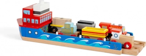 Un accessorio che dà nuova vita a qualsiasi ferrovia in legno. L’imbarcazione blu con timoneria rossa, onde dipinte e un ponte in legno naturale si integra perfettamente nei set costieri o pirateschi. Grazie alla rampa ribaltabile i trenini possono salire a bordo e scendere in modo fluido, favorendo immaginazione, motricità fine e coordinazione.