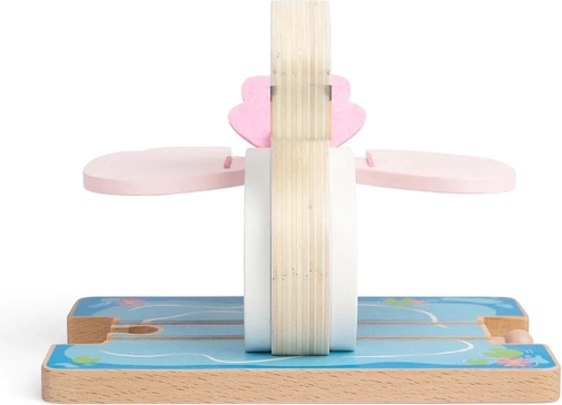 Sollevate le ali rosa del cigno e trasformatelo in un tunnel. I bambini ameranno questo semplice ma magico elemento meccanico che dà vita a ogni corsa.