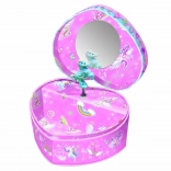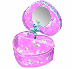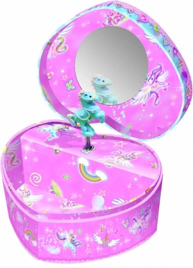 Un luogo magico per tutti i tesori dei bambini: questa scatola portagioie musicale a forma di cuore con motivo di unicorni, dopo essere stata caricata e aperta, riproduce una delicata melodia. È realizzata in carta rigida e resistente con finitura liscia ed è un accessorio perfetto per piccole principesse e amanti dell’eleganza. Adatta ai bambini dai 6 anni.