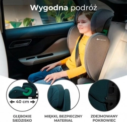 Il seggiolino è ampio e confortevole, realizzato con materiali morbidi di alta qualità. Il bambino si sentirà a proprio agio sia nei viaggi brevi che lunghi. La fodera è facilmente rimovibile e lavabile, mantenendo il seggiolino pulito a lungo.