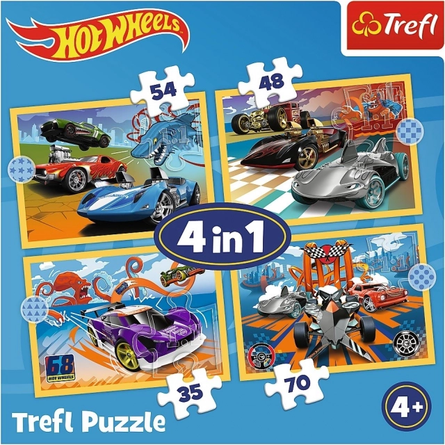 Set di quattro puzzle con i motivi della leggendaria serie HOT WHEELS del marchio Trefl che entusiasmerà i bambini dai 4 anni. Il diverso numero di pezzi (35, 48, 54 e 70) favorisce l’apprendimento graduale, sviluppa la motricità fine, la concentrazione e la percezione. Grazie alla qualità in cartone robusto e ai colori vivaci, i bambini si divertiranno sia a casa che in viaggio.