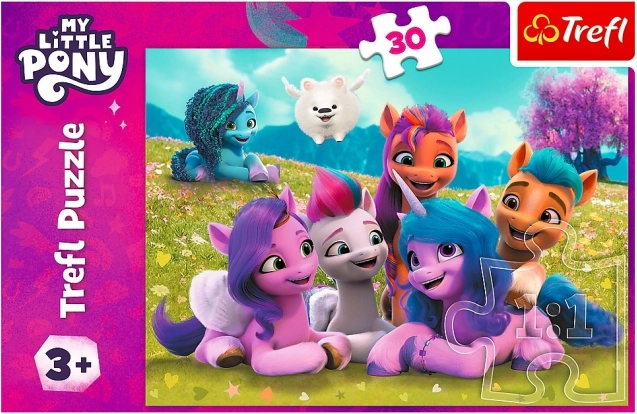 Puzzle Amichevoli pony con tema della serie preferita My Little Pony offre 30 pezzi per tutti i piccoli fan. L'immagine finita misura 270x200 mm.