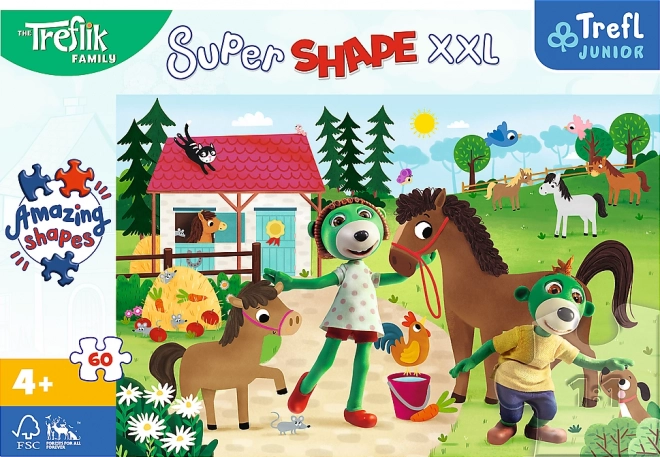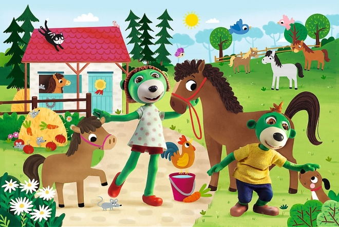 Divertenti puzzle per bambini con il tema TREFLÍCI nella fattoria dei cavalli che faranno felici tutti i piccoli appassionati di rompicapi. I grandi pezzi XXL sono facili da afferrare e ideali per i bambini. Una volta completato, si ottiene un’immagine di 60 × 40 cm, che sviluppa motricità fine, pazienza e pensiero logico.
