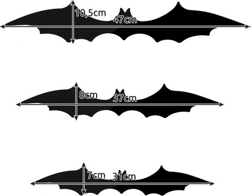Apertura alare di 47, 37 e 31 cm per creare uno stormo dinamico di pipistrelli e valorizzare la zona principale della decorazione.