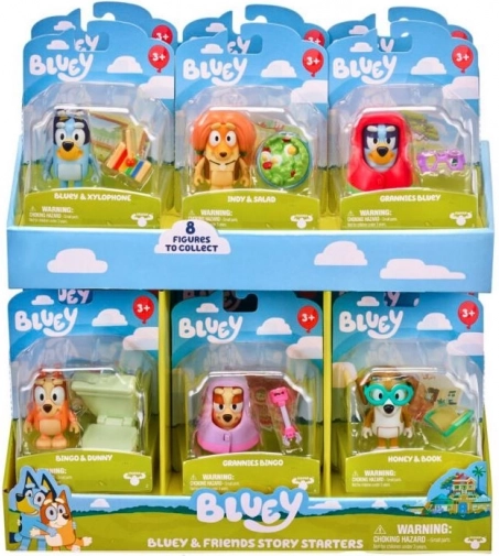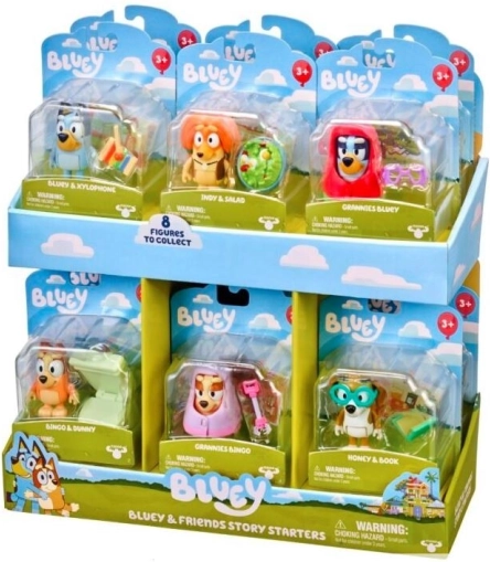 Immergiti nel mondo di Bluey e unisciti alle sue avventure con amici come Bingo, Honey, Snickers, Indy e Muffin. Ogni set "Inizio del gioco" si collega tematicamente agli episodi della serie Bluey e include accessori per ogni personaggio. Ogni confezione include anche una deliziosa mini cartolina a tema ispirata alla serie.