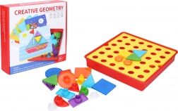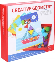 Mosaico creativo con forme geometriche per bambini che sviluppa motricità fine, pensiero logico e creatività. La confezione include una base 25 × 25 cm, 22 forme e 12 schede per comporre facilmente le immagini.