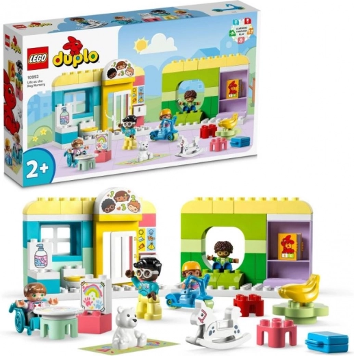 Lego Duplo - Una giornata all'asilo è un set di gioco educativo ideale per stimolare la creatività e l'apprendimento dei bambini piccoli. Questo set offre una varietà di scenari divertenti che imitano un vero asilo, dove i bambini possono immergersi in giochi di ruolo e sviluppare abilità sociali.