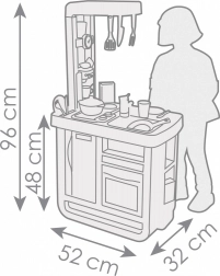 È disponibile in tonalità pastello delicate che si armonizzano con qualsiasi arredamento. Genitori e bambini apprezzeranno sicuramente l'ampia dotazione della cucina, che include fornello con 2 piastre, forno con sportelli apribili, frigorifero, lavello con rubinetto e macchina del caffè. Il modulo sonoro elettronico sottolinea la realtà del gioco con suoni di cucina, offrendo ai bambini piaceri ancora maggiori.