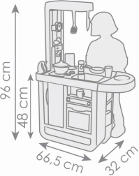 Cucina Bon Appetit Cherry è una cucina giocattolo che offre un design moderno e una vasta gamma di accessori. Grazie alla sua delicata colorazione pastello è ideale sia per la stanza dei bambini che per il soggiorno. I bambini possono giocare a fare i cuochi con i fornelli accesi, il forno e la cappa che emettono suoni elettronici di cottura.