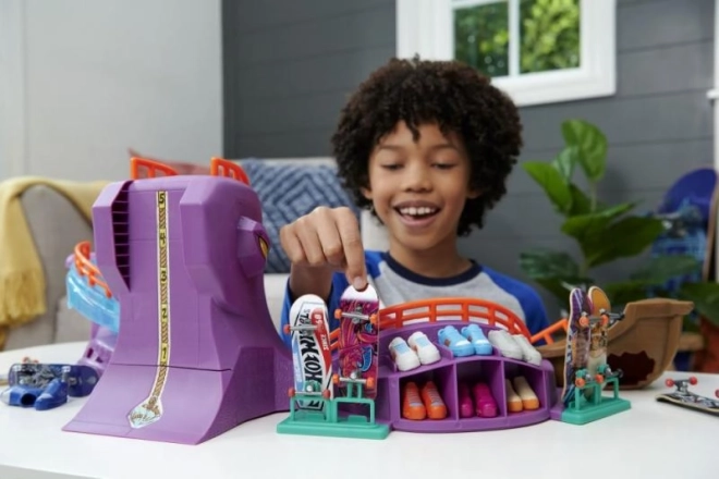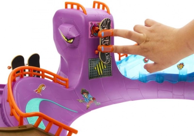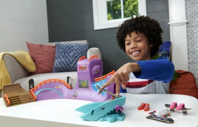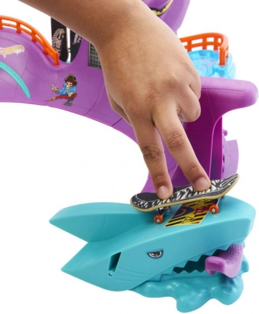 Hot Wheels Skate Octopark è un set di gioco alla moda per fingerboarding. Scendi dalla testa gigante del polpo e vivi un'avventura epica, piena di rampe, gradini e sorprese sotto forma di uno squalo!
