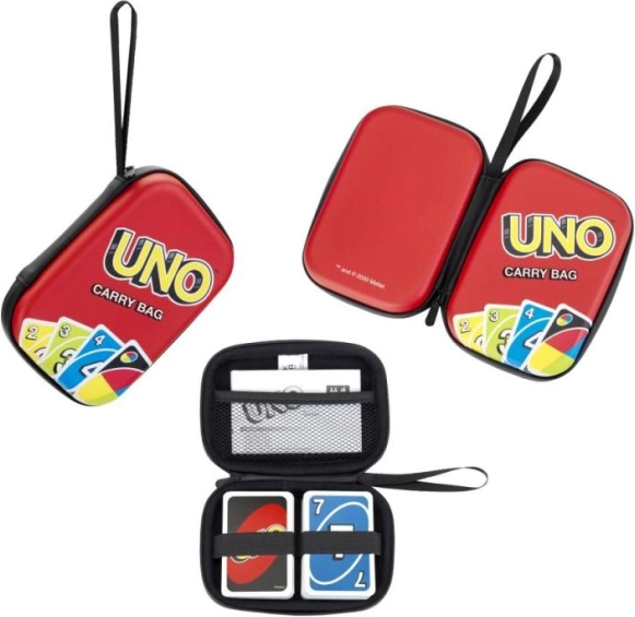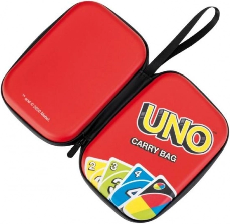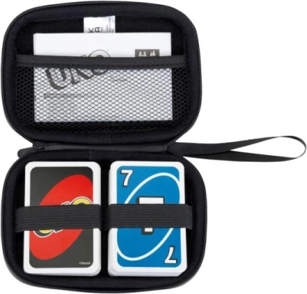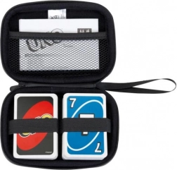 Organizza le tue carte UNO con questa pratica custodia da viaggio. Assicura che le tue carte siano sempre a portata di mano e al sicuro dall'umidità. La custodia è dotata di una tasca interna in rete perfetta per conservare il manuale del gioco.